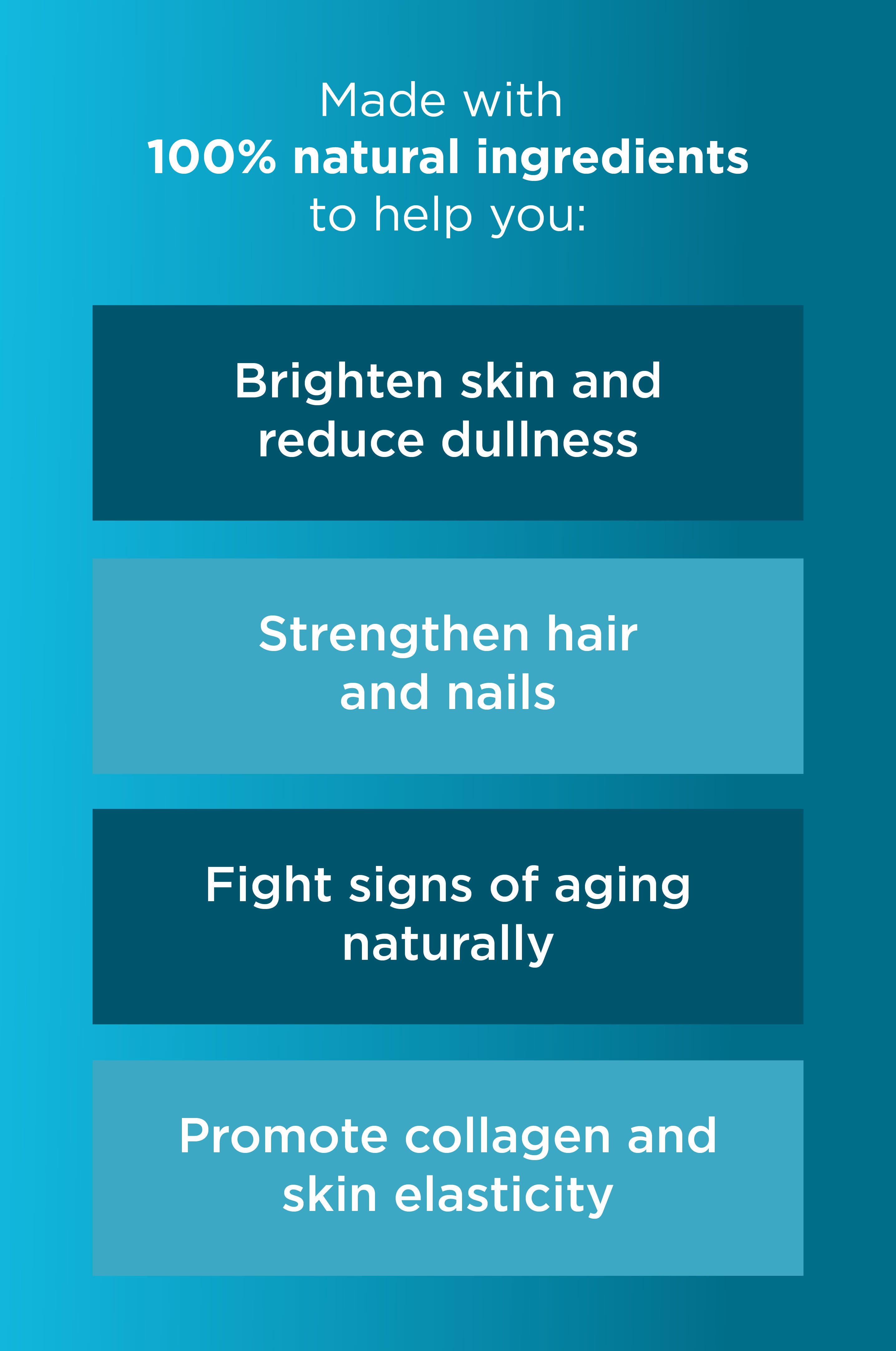 Take 1-2 capsules daily with meals or as directed by a healthcare professional, providing 15 servings per container for comprehensive anti-aging and skin health support.